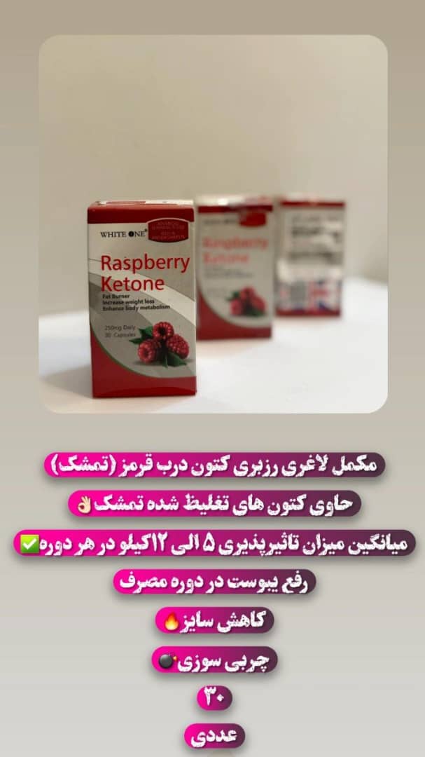 مکمل لاغری رزبری کتون (تمشک) 30 عددی 5تا12کیلوکاهش