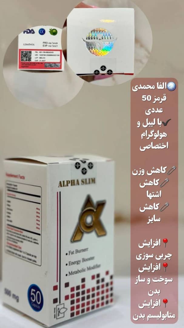 آلفا اسلیم محمدی 500 میل بهترین نمونه بازار کاهش وزن 10 تا 17کیلو کپسول قرمز